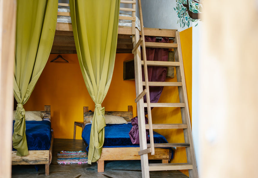 Casa India is a unique octagon-shaped building with three bedrooms, each with its own private bathroom and individual entrance. Two of the bedrooms include built-in lofts, creating extra space and privacy — a great semi-private option that still feels comfortable and welcoming. All showers have hot water, and a washing machine is available for use.